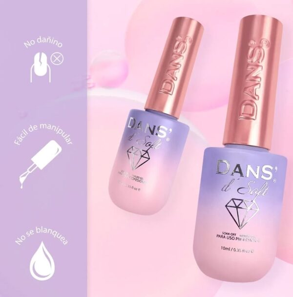 Uso: Aplicar después de la base, colocar el Soft tip gel, hacer precurado y a la lámpara