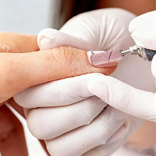 *Preparación de la uña natural: Elimina el brillo natural de la superficie de la uña para asegurar una mejor adherencia del esmalte en gel o acrílico.